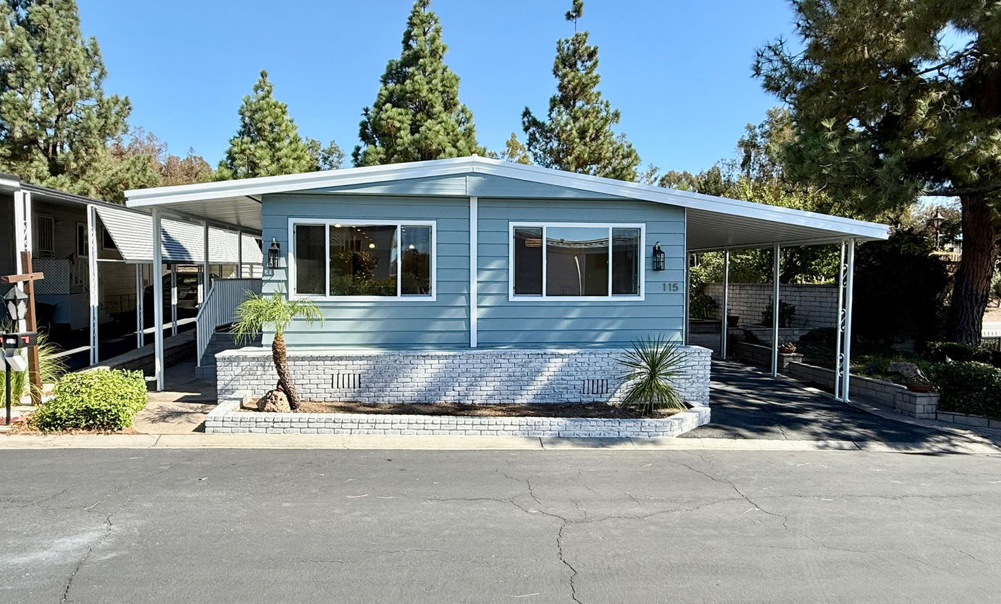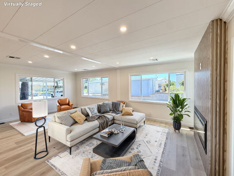 Welcome to your dream home in the serene and beautifully maintained mobile home park of Forest Gardens! This immaculate residence boasts exceptional curb appeal with a freshly painted exterior and a remodeled covered porch, perfect for enjoying your morning coffee or evening sunsets. The low-maintenance landscaping and spacious patio provide a tranquil outdoor oasis, while the privacy from the perimeter wall ensures a peaceful retreat. Newly installed central air conditioning and energy-efficient double-pane vinyl windows flood the home with natural light, creating a warm and inviting atmosphere throughout. This home has been meticulously remodeled from the ground up, showcasing a harmonious blend of comfort and style.
