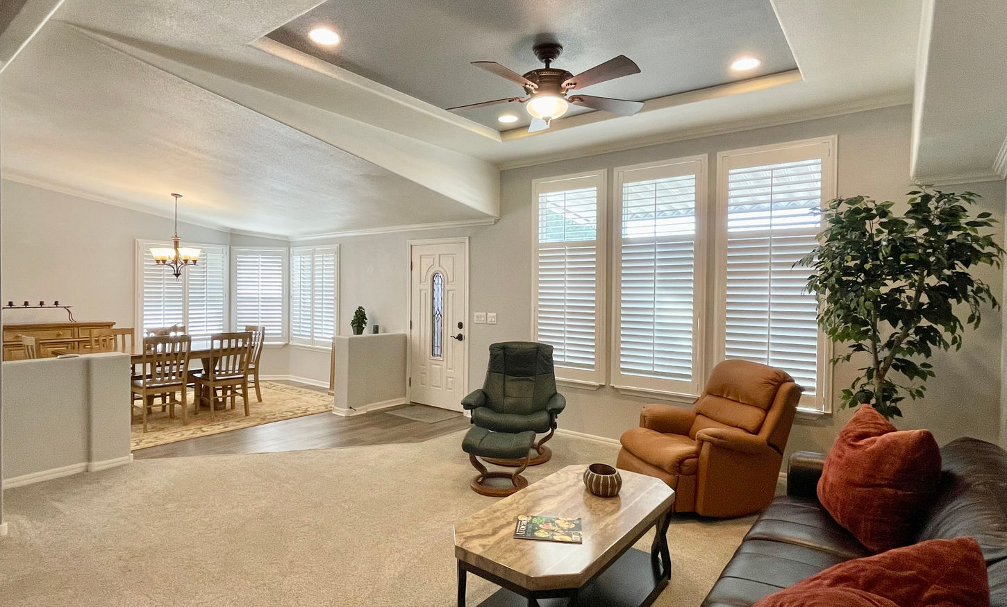 JUST LISTED!! South Coast Mobile Homes is Pleased to Offer this Beautiful, Spacious, and very well-maintained 2012 CAVCO Manufactured Home in Lake Forest, California. This home offers 2 Large Bedrooms Plus a Den or Office and 2 Full Baths, and over 1600 SQ FT of Living Space. Inside, you'll find Elegant Vaulted Ceilings and Lots of Natural Light that comes through the large Double-Pane Windows with Beautiful Plantation Shutters and Multiple Skylights. The Kitchen is Large and Open and includes both a Convenient Eat-In Area and Center Island. All the Appliances are included, and there are Plenty of Cabinet and Countertop Space, making this kitchen perfect for the serious home chef. The Living Room is Spacious, with an adjacent Formal Dining Area. The Open Concept and High Ceilings make this a Great Space for Entertaining. The Large Master Suite Includes a Large Bedroom, a Master Bath with Double Sinks, a separate Water Closet, and a Large Step-In Shower. A Large Walk-In Closet completes the En Suite Master Bath.