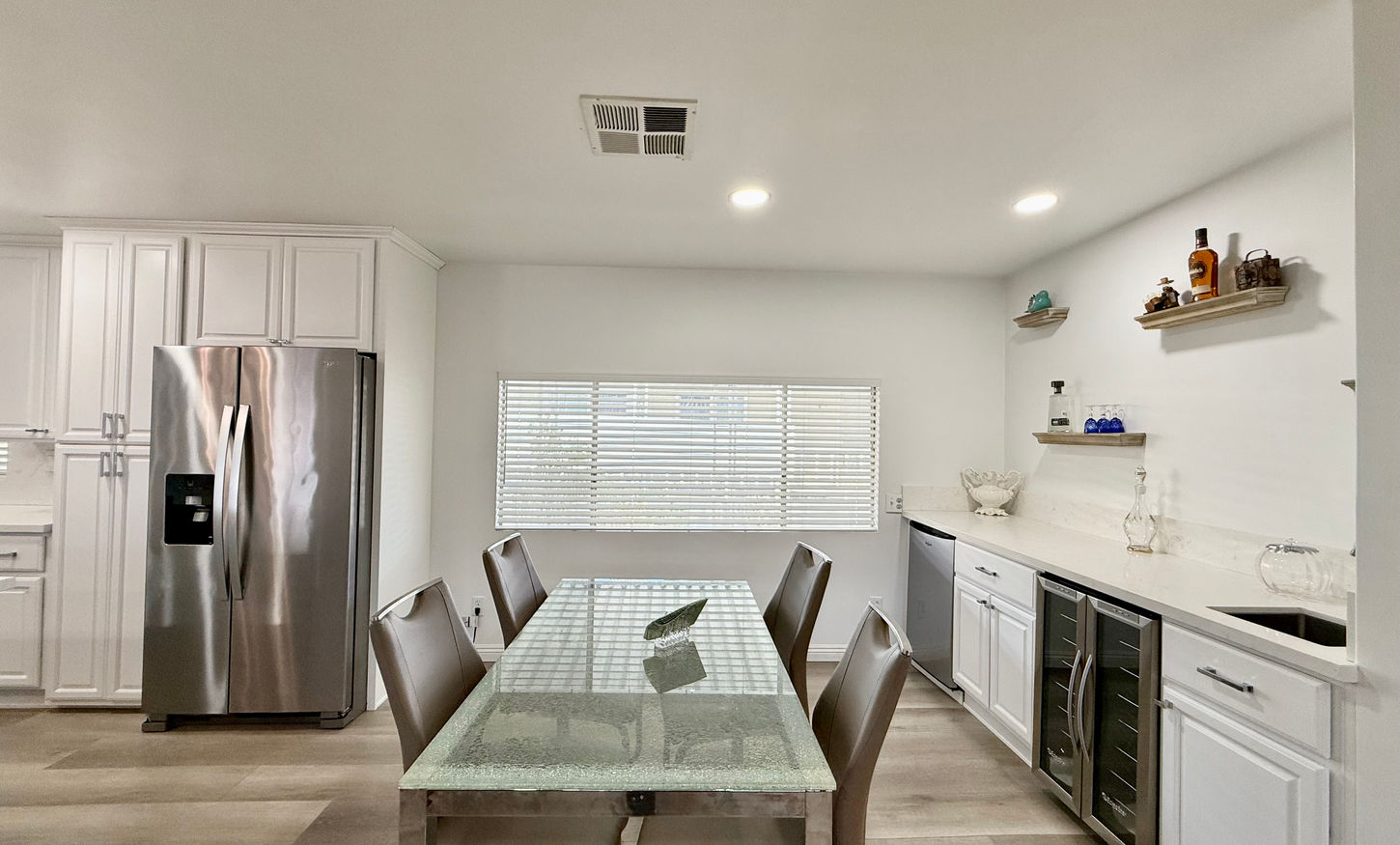 The Interior of this Beautifully Remodeled Home is like stepping into a Designer Display. It offers an Elegant Kitchen with Stunning Quartz Countertops and Oversized Quartz Center Island with Cabinet Storage on Both Sides. Modern White Cabinets and Gorgeous Stainless Steel Appliances Complete this Designer-Inspired Renovation. Plus, there is a Fully Equipped Wet Bar with a Sink, Ample Storage, and an Undercounter Fridge and Wine Cooler. Other Special Touches of this home include Gorgeous New Flooring, Central Heating and Air Conditioning, a New Water Heater, and Custom Fixtures everywhere you look. This Elegant Home has been Drywalled throughout, including the Ceilings, and the Plumbing under the home was recently replaced with Pex Brand Plumbing Lines. Both bathrooms have been Beautifully Remodeled, Including Tile Showers with Custom Shower Doors, New Vanities and Fixtures. We could go on, but you have to see this house to appreciate what it offers. Call today to schedule a personal tour.