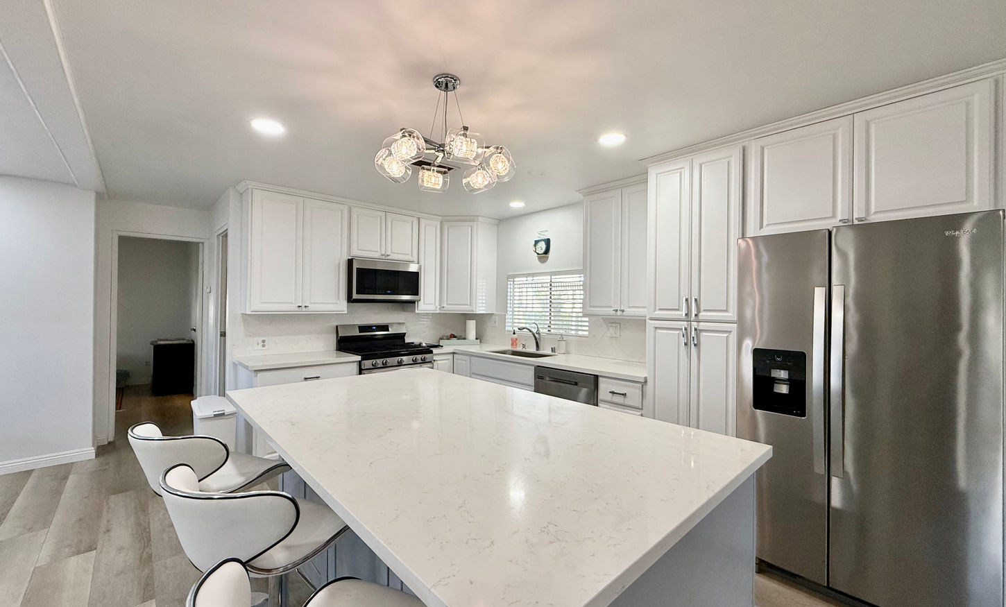 JUST LISTED!! In Forest Gardens Mobile Home Park in Lake Forest. This is a Highly Upgraded, Move-In Ready Mobile Home with all the Amenities you could ask for and more. This Incredible Home offers 1,440 sq. ft. of Living Space, including 3 Very Spacious Bedrooms and 2 Full Bathrooms, A Large Living Room and Eat-In Kitchen with a Full Wet Bar complete with an Under-Cabinet Fridge, Wine Cooler, and Sink.