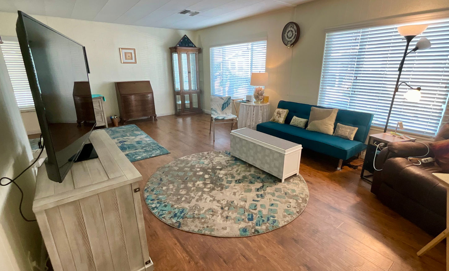 JUST LISTED! Don't miss this opportunity to get into a Spacious 2 Bedroom 2 Bath Manufactured Home in Desirable Prothero Mobile Home Park in Lake Forest. This home offers 1,440 sq. ft. of Living Space Plus another 175 sq. ft. Sun Room off the Main Living Area. This Move-In Ready Home has been Freshly painted inside and out, giving the rooms a Bright, Open, and Spacious feeling. You will find Luxury Vinyl Flooring, Energy Efficient Double-Pane Windows, Custom Fixtures and Attention to Detail Throughout. The Spacious Kitchen Includes all Stainless-Steel appliances, a State-of-the-Art Induction Stove Top, and Convenient Eat-In Seating at the Breakfast Bar. The Primary Bedroom and En-Suite Bath are quite large and include a Large Step-In Shower, a Makeup Counter, and Lots of Linen Storage. Outside the home, you will find a Relaxing Covered Porch, Covered Parking for Two Vehicles, a Spacious Shed, and Outstanding Low-Maintenance Hardscape around the property. Other great features include Central Heat and A/C, Ring Cameras, and Various Plumbing Upgrades. This house is ideally located in the park to Maximize Privacy and still be close to Shopping, Dining, and Other Services. You'll also want to take advantage of the sparkling Community Pool, Spa, and Active Community Center. Call today to see this wonderful home!