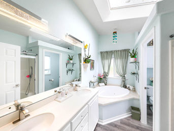 Inside, you will be greeted with a Modern and Updated Look, including a Gorgeous Kitchen with two-tone white and grey cabinets and elegant brass hardware, Newer High-End Cafe Series Appliances, Beautiful Quartz Countertops, and Laminate Floors. You'll also enjoy endless views from every room through large Double-Pane Windows and Patio Doors, A Dramatic Wood-Burning Fireplace, and Vaulted Ceilings with Skylights that let in Lots of Natural Light. The Oversized Primary Bedroom with En Suite Bath is both Spacious and Elegant, with 2 Sinks, Large Soaking Tub, and Step In Shower. The Second Bedroom and Bath are equally spacious, bright, and inviting for your guests.