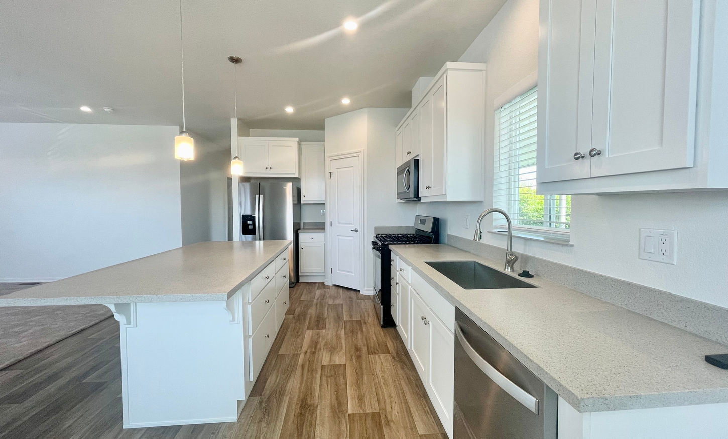 FOR RENT!! Gorgeous BRAND NEW 3 Bedroom 2 Bath Manufactured Home in Rancho La Paz All-Age Mobile Home Park in Anaheim, CA. If you're looking for a Beautiful home you can rent today; then this 2024 Skyline home could be THE ONE! With 3 Bedrooms, 2 Full Bathrooms, and a Huge Back Yard, this Manufactured Home has a lot to offer. Outside, You will find a Large Side, Back Yard, and Front Covered Porch. You will also find a Storage Shed and Parking for up to 3 Vehicles. The inside features a Large Kitchen with All New White Cabinets, Custom Quartz Countertops, and All New Stainless Steel Appliances. The Kitchen is open to the Living Room, making this space ideal for Entertaining during the Holidays or any Family Gathering. This Skyline Model also offers two Spacious Guest Rooms plus a Large Master Bedroom Suite in the back. The Master Bedroom Suite includes a Gorgeous Master Bath with a Large Step-In Shower, a Private Water Closet Room, and a Generous Walk-In Closet. Other features include Elegant High Flat Ceilings, a Laundry Area with a New Washer and Dryer included, Central Heat and A/C, and New Energy-Saving Windows. Rancho La Paz is a Premier Mobile Home Park with Full Amenities and Manicured Grounds. If you're looking for a great Home to Rent with the amenities of a 5-Star Complex, then this Home Should Be on Your Short List. Call Today to arrange a tour of this home or join us for one of our frequent open houses. Call soon, this won't last long.