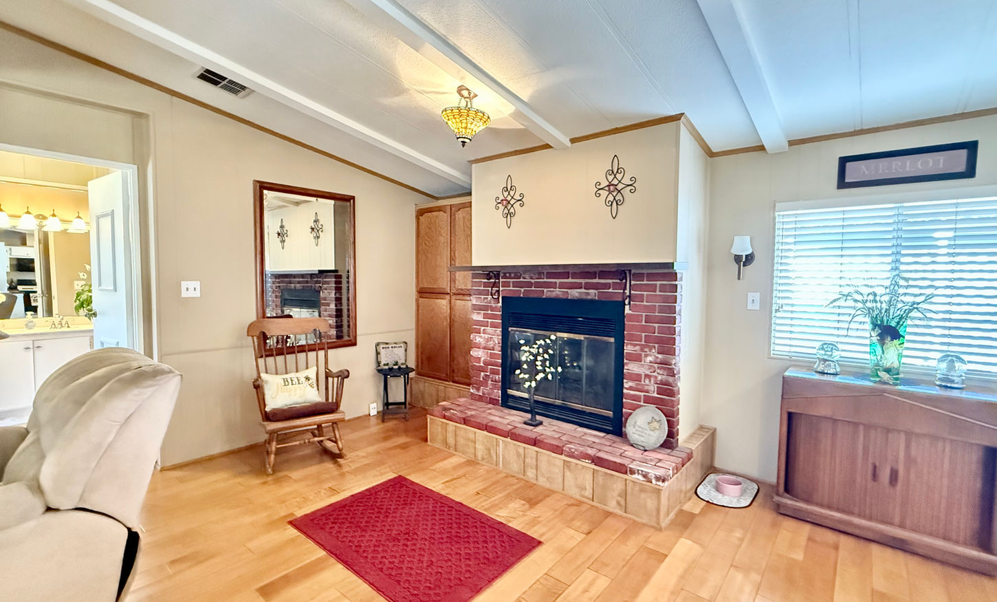 PRICE REDUCED $15,000 from $235,000 to only $220,000!! Welcome to your dream manufactured home in the heart of Orange, CA! This stunning three-bedroom, two-bath mobile home boasts exceptional curb appeal, with a newly painted exterior and a working sprinkler system to keep your landscaping looking its best. There is covered parking up to three vehicles and a large covered porch to enjoy the summer breezes. Step inside to discover a vast living room adorned with vaulted ceilings and abundant natural light, enhanced by large windows and solar tubes. The spacious kitchen is a chef's delight, featuring elegant white cabinets, a large pantry, and all appliances included for your convenience. Relax by the cozy wood-burning fireplace or unwind in the expansive master retreat, complete with a luxurious step-in shower and a generous walk-in closet. This home offers two spacious guest rooms, one featuring a built-in desk for an ideal home office setup, along with a guest bath equipped with a tub and shower combo. The laundry room, complete with a washer and dryer and ample cabinet storage, adds to the home's functionality. Outside, the backyard provides a perfect space for entertaining or enjoying the California sunshine. With beautiful bamboo flooring throughout the living areas and an array of thoughtful features, this manufactured home is a perfect blend of comfort and style, ready for you to make it your own!
